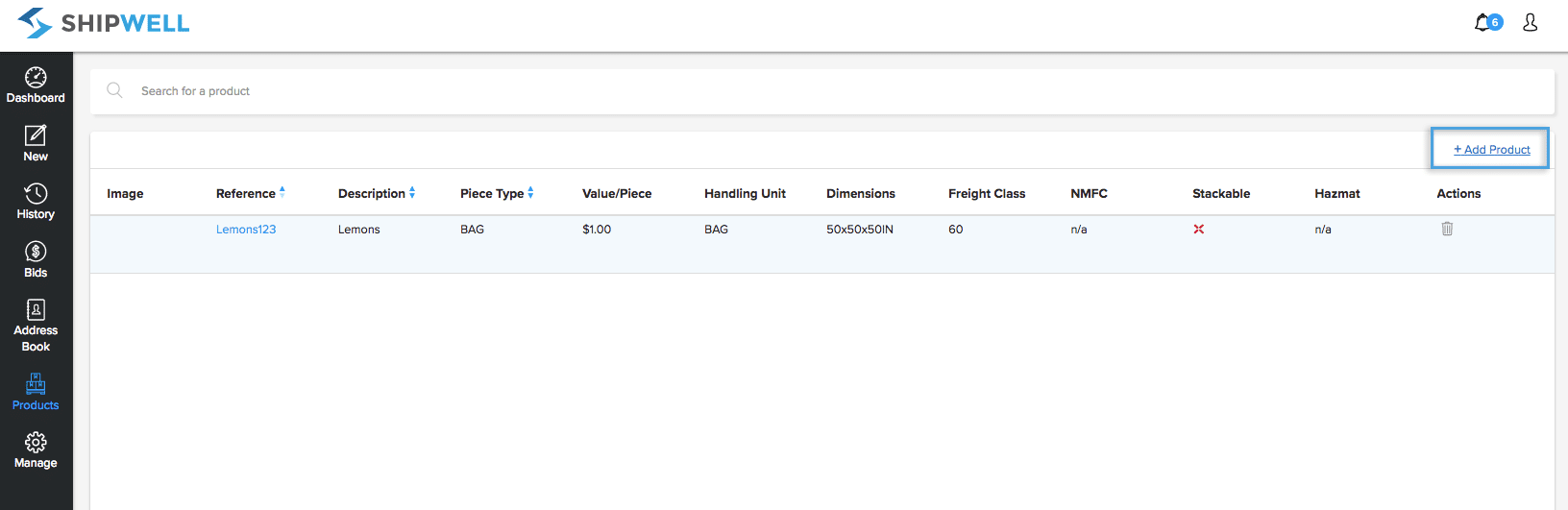 When building a new shipment, you'll be able to quickly refer to your saved products.