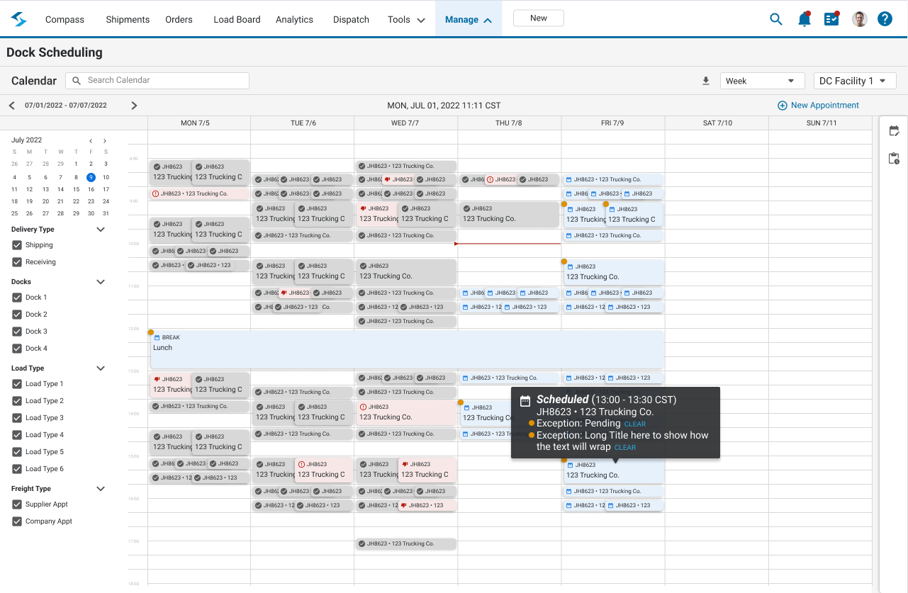 - Leverage Real-Time Visibility: Use live ETAs, dwell data, and more for proactive scheduling optimization.